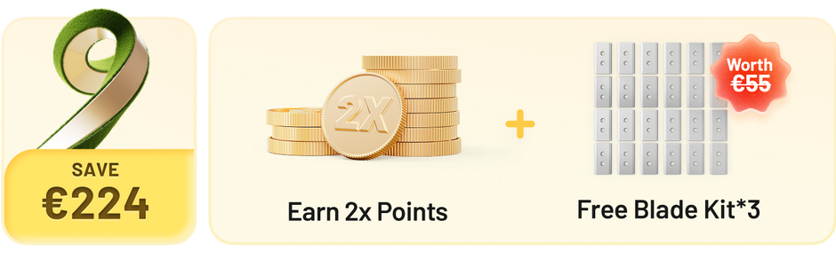 Up to €300 off + Free Gifts worth €199+€42 Off Bundle+€50 new customer coupon. Get a Free Garage (worth €199) automatically when you purchase a LUBA 2 AWD 3000X or LUBA 2 AWD 5000X; Get Free Blades (worth €55) automatically when you purchase a LUBA mini AWD 800, LUBA mini 1500 or YUKA 3000— no extra steps required. Get a Free Cutting disc (worth €49) when you purchase a YUKA mini 600 or YUKA mini 800. The gift will be automatically added to your cart at checkout.